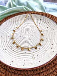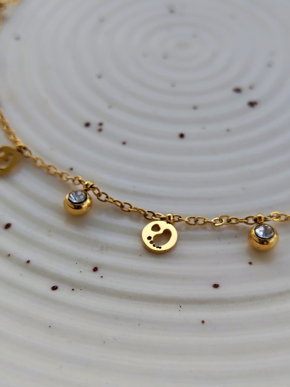 Anti-Tarnish Golden Chain with Baby foot and evil eye with stone .